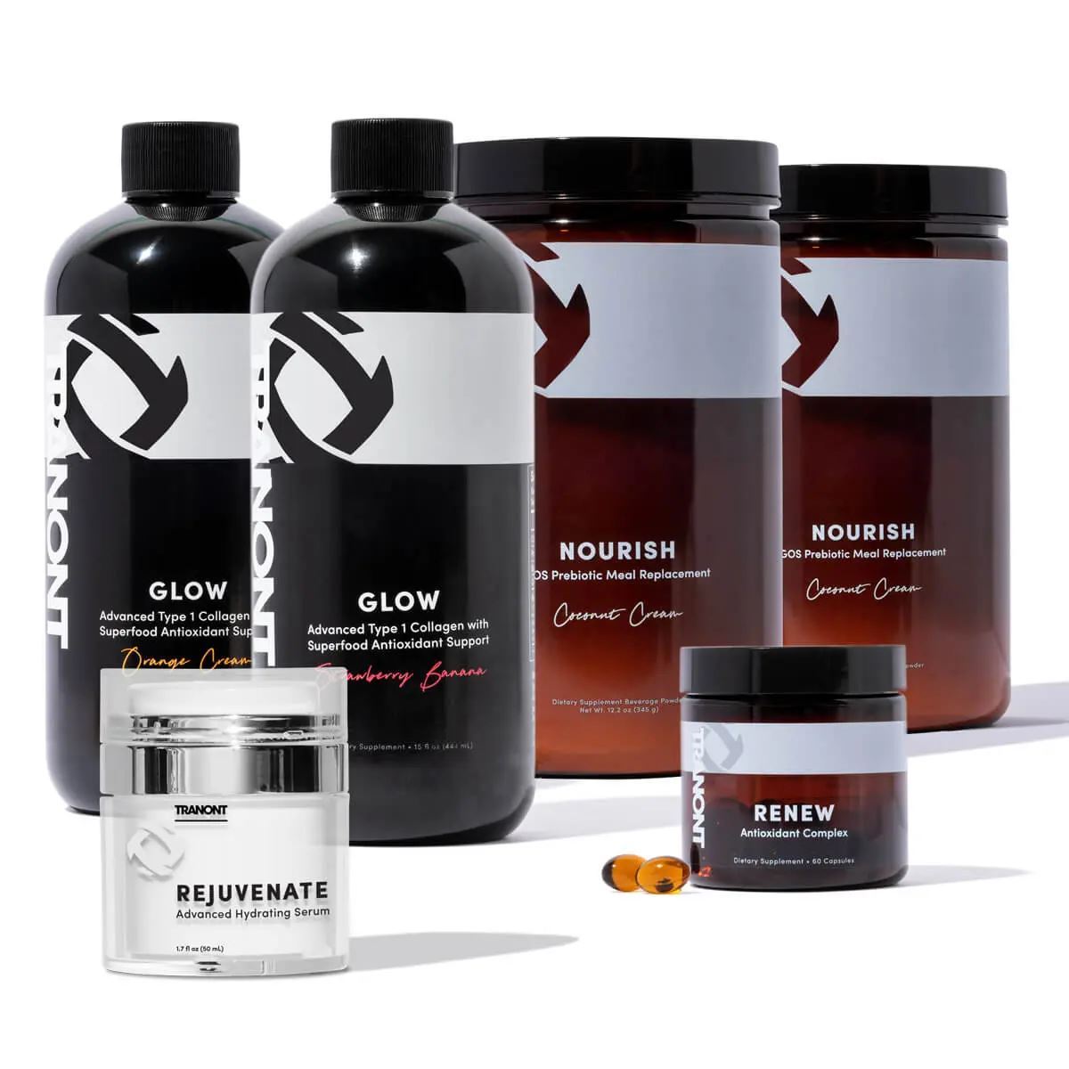 Glow has hydrolyzed type 1 collagen and powerful antioxidants that help your skin look and feel healthy and renewed; Rejuvenate is specially formulated to help restore the skin’s appearance by supporting natural cell regeneration through powerful skin-supporting ingredients like glycerin, black tea, squalane, bakuchiol, and acetyl hexapeptide-8; The galacto-oligosaccharides (GOS) in Nourish promote a healthy gut microbiome, which leads to clinically proven cosmetic benefits on skin; and Renew contains vitamin-E tocotrienols and geranylgeraniol (GG) from the Amazonian annatto tree, which protect, repair, and revitalize your skin on the cellular level.